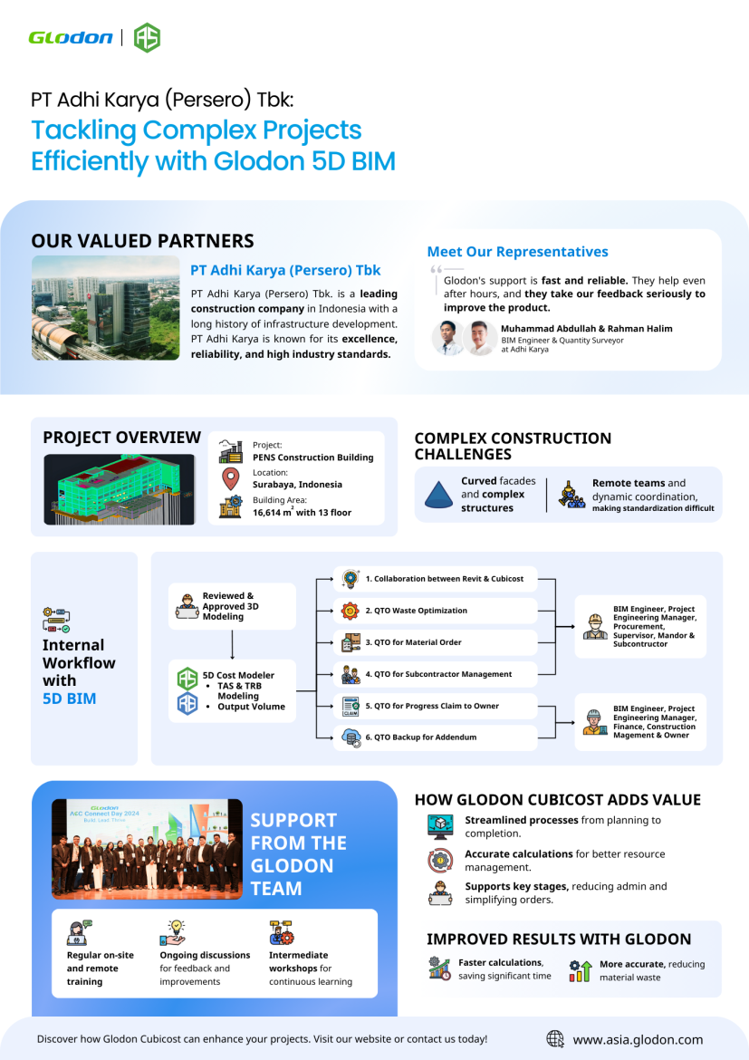 The construction industry is constantly evolving, and in Indonesia, where infrastructure growth is a key focus, companies like Adhi Karya are raising the bar by integrating cutting-edge digital technologies. With Glodon’s 5D BIM, Adhi Karya has revolutionized the construction phase, setting a new standard for precision, efficiency, and innovation. This professional yet conversational look at their transformation explores how digital tools are reshaping Indonesia’s construction landscape.